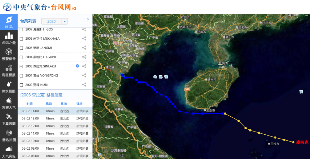更新时间 2021年10月08日 1127. 台风路径实时发布系统是由中央气象台权威发布台风信息系统系统可及时准确地提供最新最全的台风实时信息预报路径同时整合卫星云图气象雷达降雨等内容 中央气象台台风网 触屏版 年份 月份 无 1 2 3 4 5 6 7 8 9 10 11 12 台风列表 年份 预报机构 路径信息 内陆沿岸近海远海 24小时48小时72小时 24小时48小时72小时 小雨中雨大雨暴雨大暴雨特大暴雨 暴雨海区大风降温大风 沙. 台风路径实时发布系统是由中央气象台权威发布台风信息系统系统可及时准确地提供最新最全的台风实时信息预报路径同时整合卫星云图气象雷达降雨等内容 中央气象台台风网 电脑版 台风 预警信号 降水预报 卫星云图 24小时 48小时 72小时 小雨 中雨 大雨 暴雨 大暴雨 特大暴雨.
